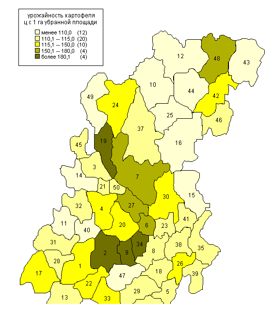 УРОЖАЙНОСТЬ КАРТОФЕЛЯ в 2009 году ц с 1 га убранной площади